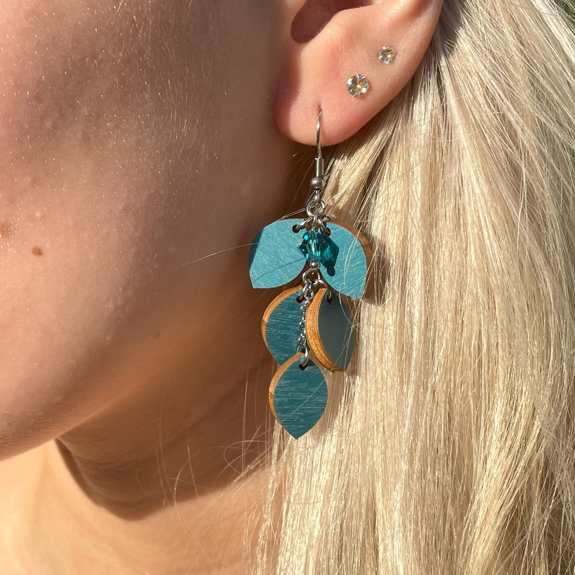 Korvakorujen materiaali on suomalainen PEFC- ja FSC- sertifioitu koivuvaneri. Puuosat on laserleikattu ja kuviot printattu (molemmin puolin) Helsingissä. Korvakorut suunnitellaan ja kootaan muotoonsa Vantaalla. Metalliosat ovat allergiaystävällistä kirurginterästä, joka ei tummu käytössä. Korviksen pituus koukku mukaan laskettuna on 6,5 cm.