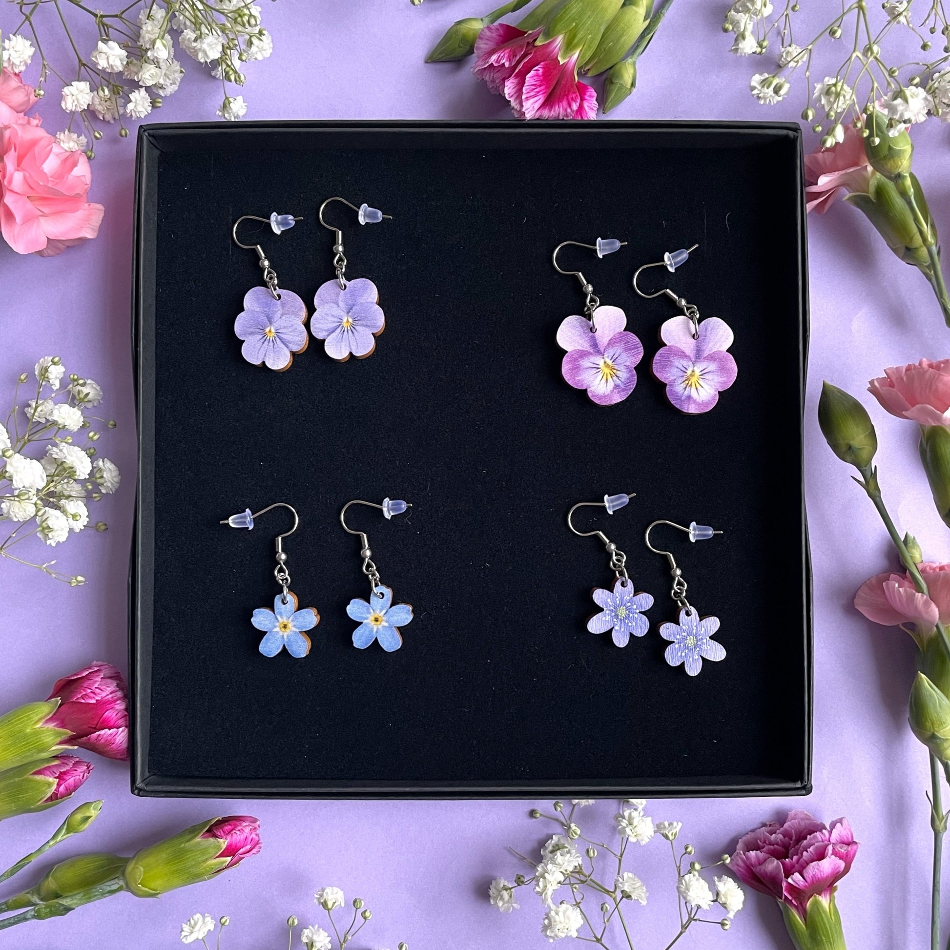 Boxi sisältää neljä paria pienikokoisia kukkakorvakoruja sekä yhdet yllätyskorvakorut: