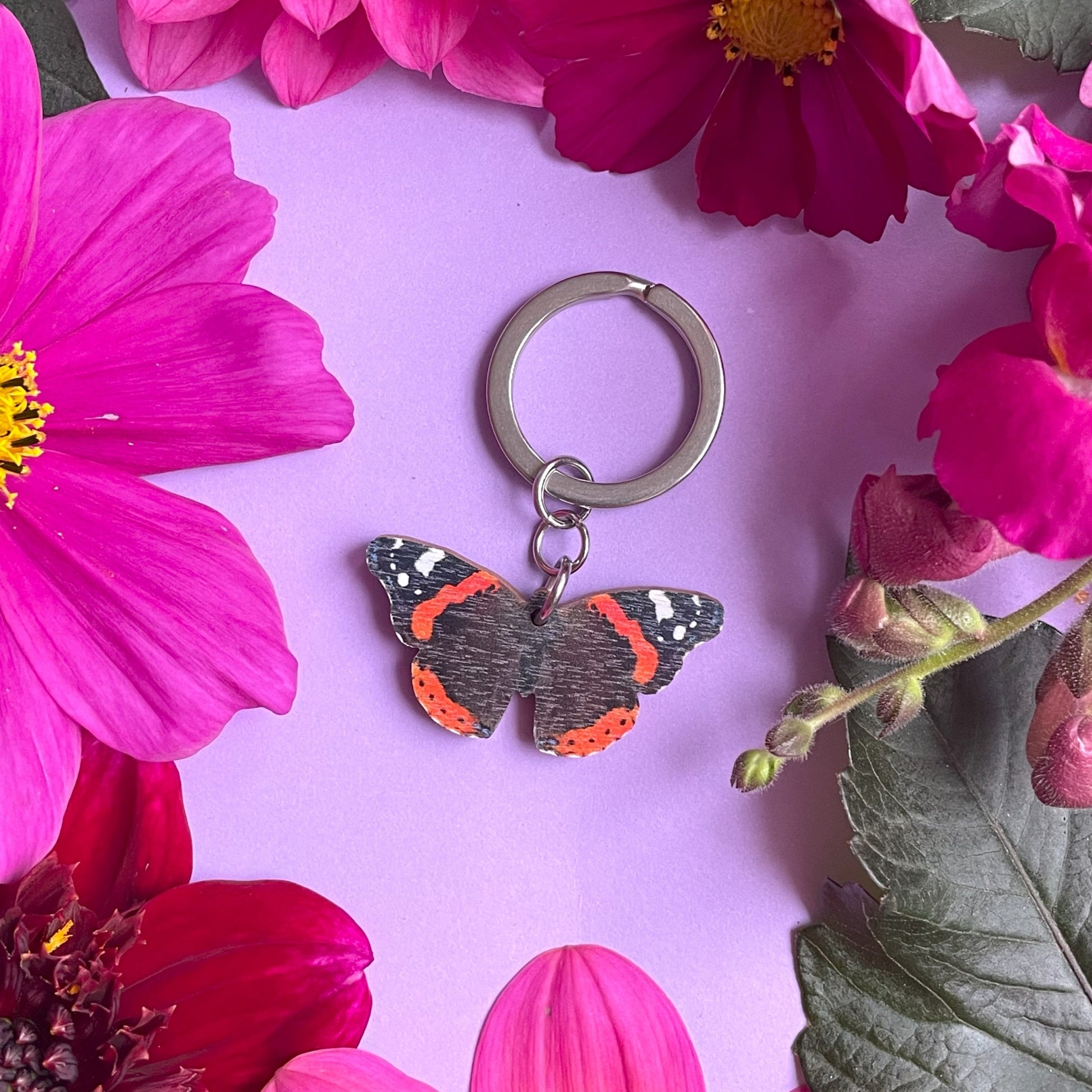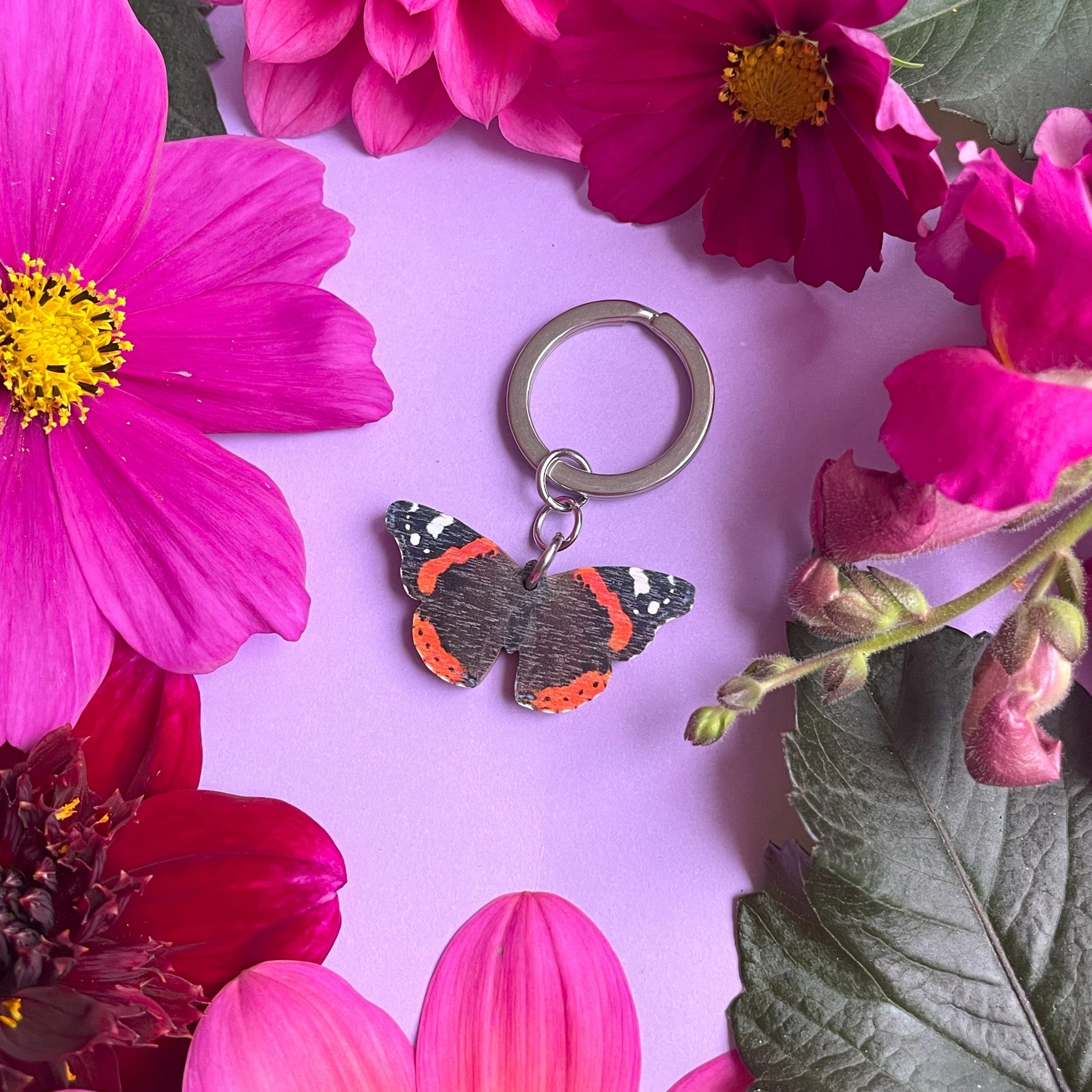 Näyttävä amiraaliperhonen avaimenperänä! Materiaali on suomalainen PEFC- ja FSC- sertifioitu koivuvaneri. Perhonen on suojattu suojalakalla, jolloin se kestää paremmin kulutusta. Metalliosat ovat ruostumatonta terästä.