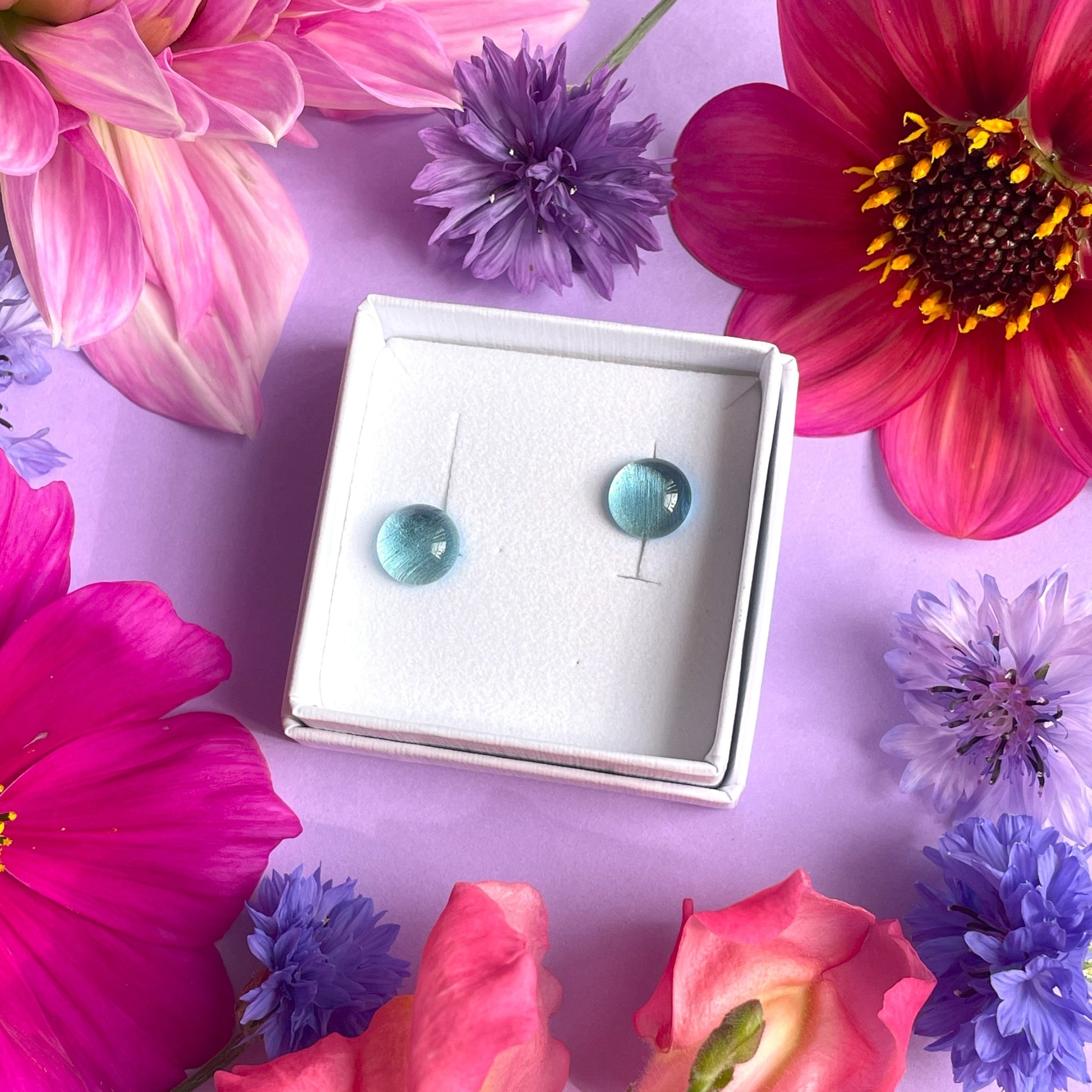 Herkulliset nappikorvakorut sulatettua lasia ja 925 hopeaa. Inxin lasikorujen kaikki lasiosat leikataan käsin, joten pieniä kokoeroja voi olla. Lasiosan koko on n. 0,9-1 cm.
