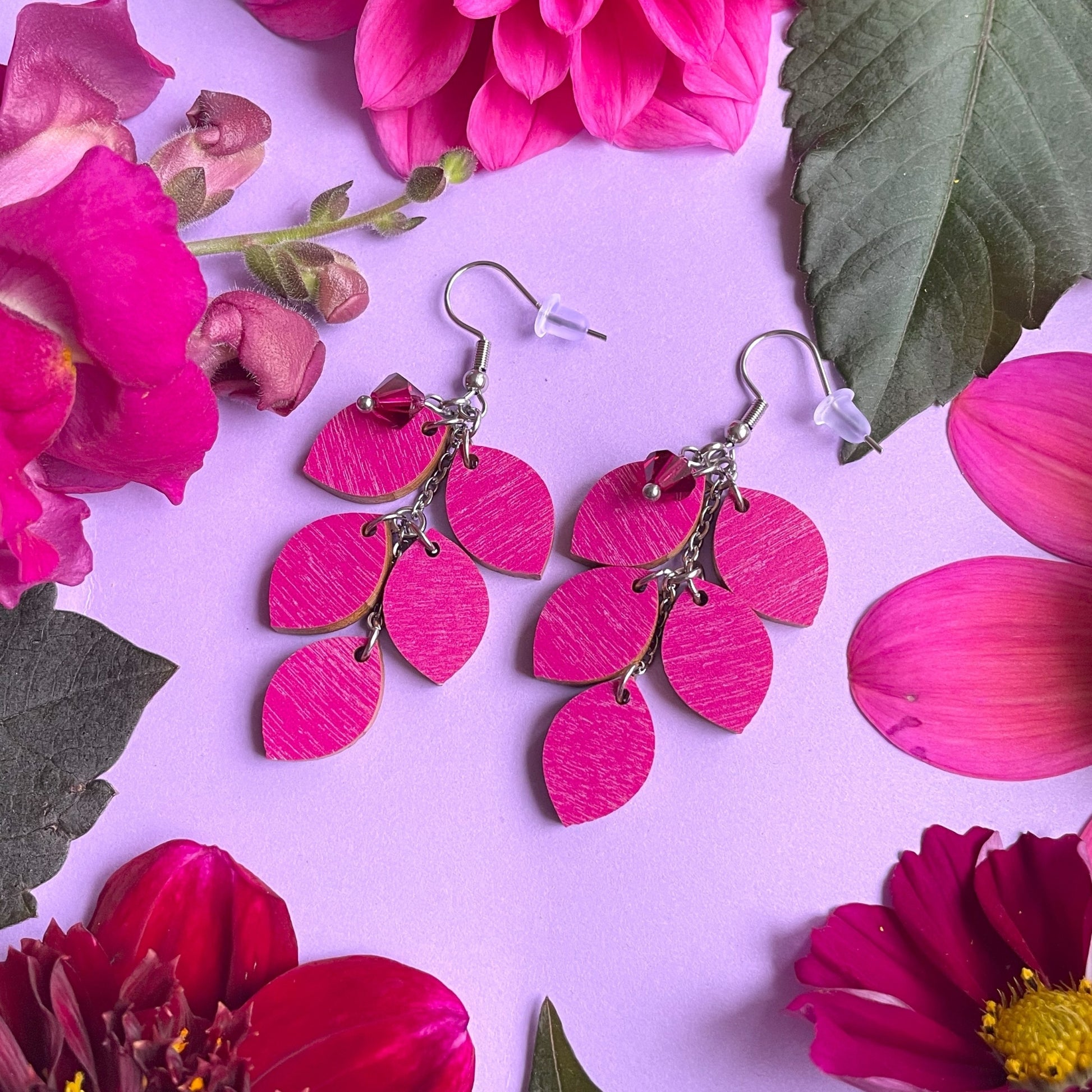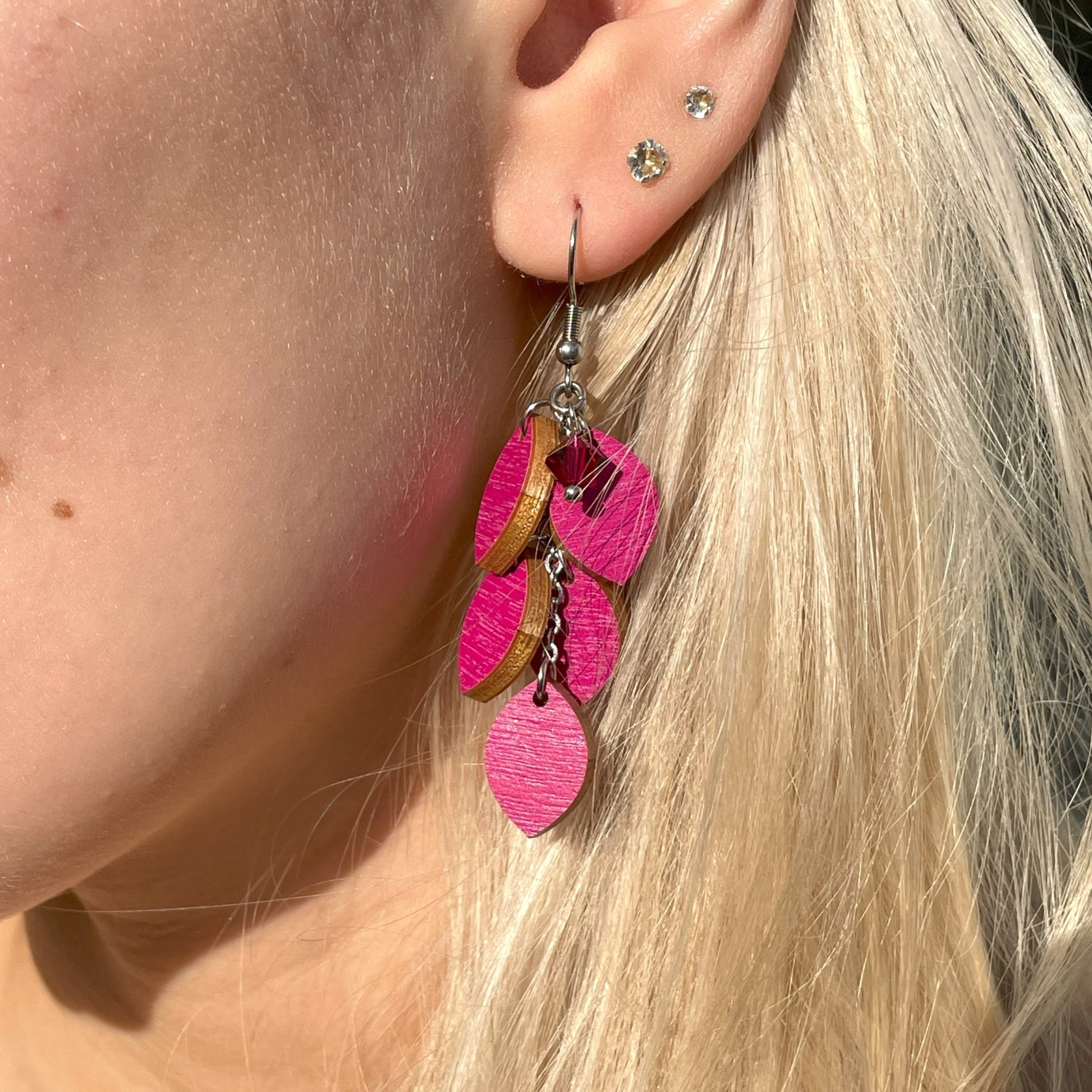 Korvakorujen materiaali on suomalainen PEFC- ja FSC- sertifioitu koivuvaneri. Puuosat on laserleikattu ja kuviot printattu (molemmin puolin) Helsingissä. Korvakorut suunnitellaan ja kootaan muotoonsa Vantaalla. Metalliosat ovat allergiaystävällistä kirurginterästä, joka ei tummu käytössä. Korviksen pituus koukku mukaan laskettuna on 6,5 cm.