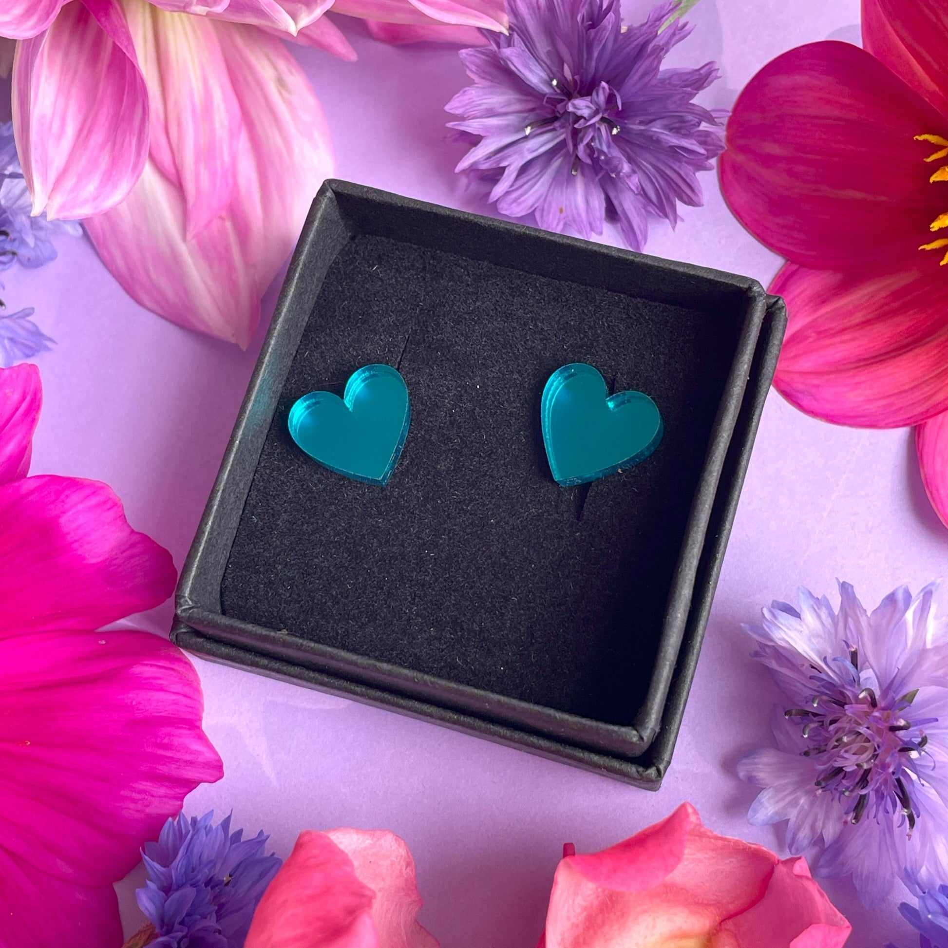 Söpöt sydännapit ovat materiaaliltaan kevyttä akryyliä, joka on laserleikattu Loviisassa ja koottu muotoonsa Vantaalla. Nappikorvisten koko on n. 13 mm. Korvakorujen metalliosat ovat kirurginterästä. HUOM! Pue peiliakryylikorvikset aina viimeisenä, ettei niihin jää pysyviä jälkiä esimerkiksi hajuvedestä tai hiuslakasta. Korvakorut toimitetaan pienessä korurasiassa.