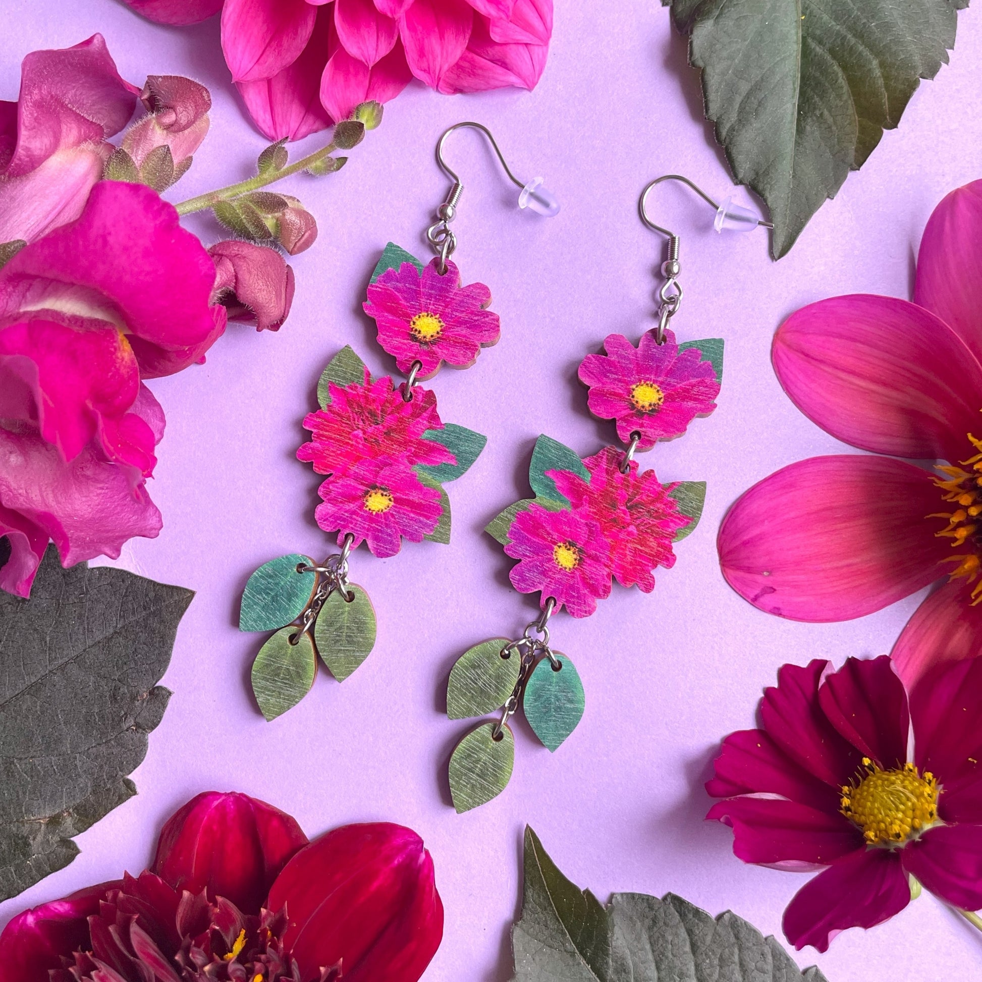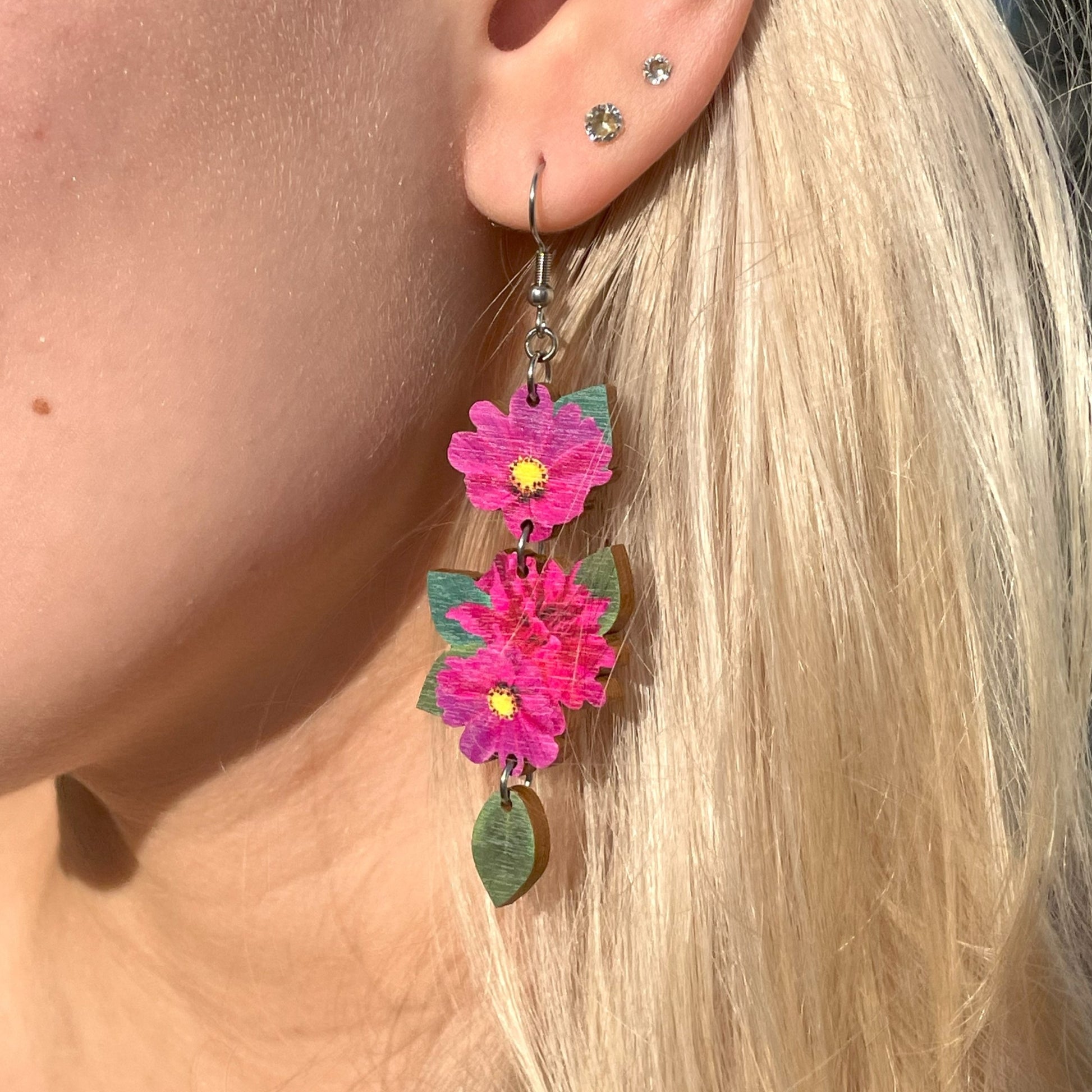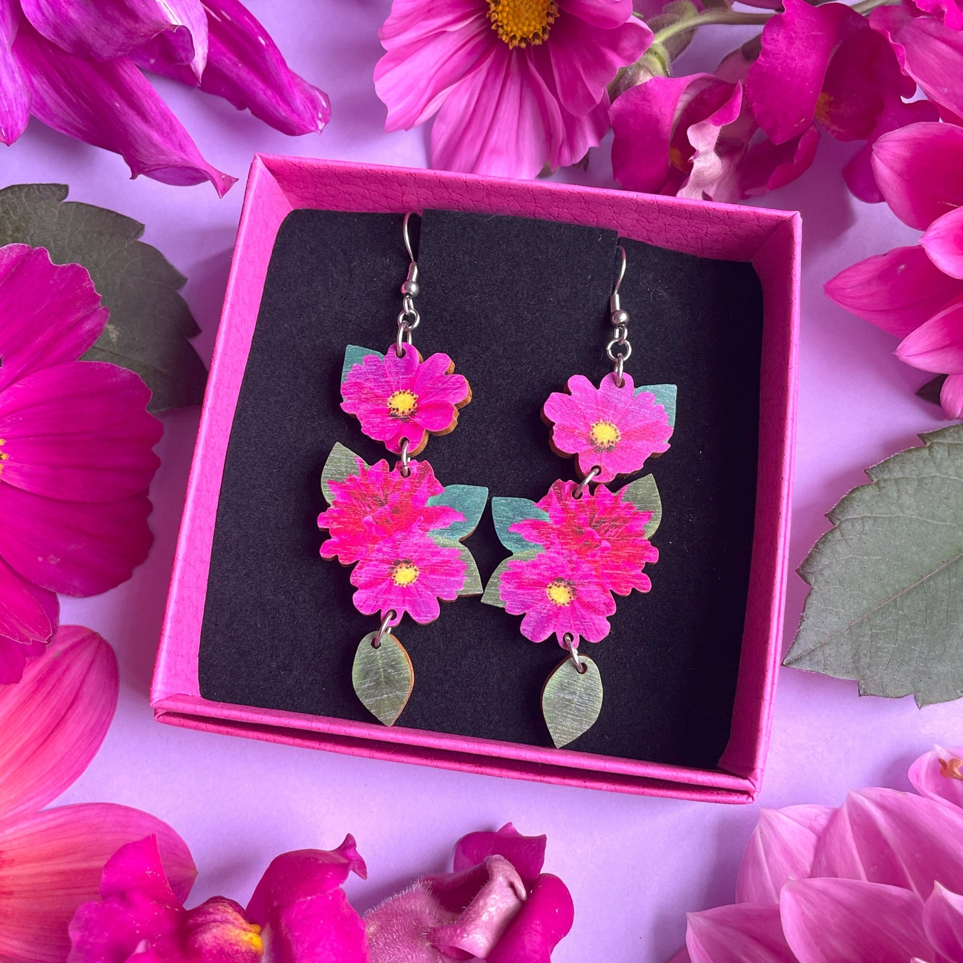 Astu esiin kuin Primadonna ja anna syksyn hehkua korvissasi! Primadonna-korvakoruissa kukkivat intensiivisen fuksian väriset daaliat ja kosmoskukat. Syksyn viimeiset kukat ovat puhjenneet ainutlaatuiseen loistoonsa.